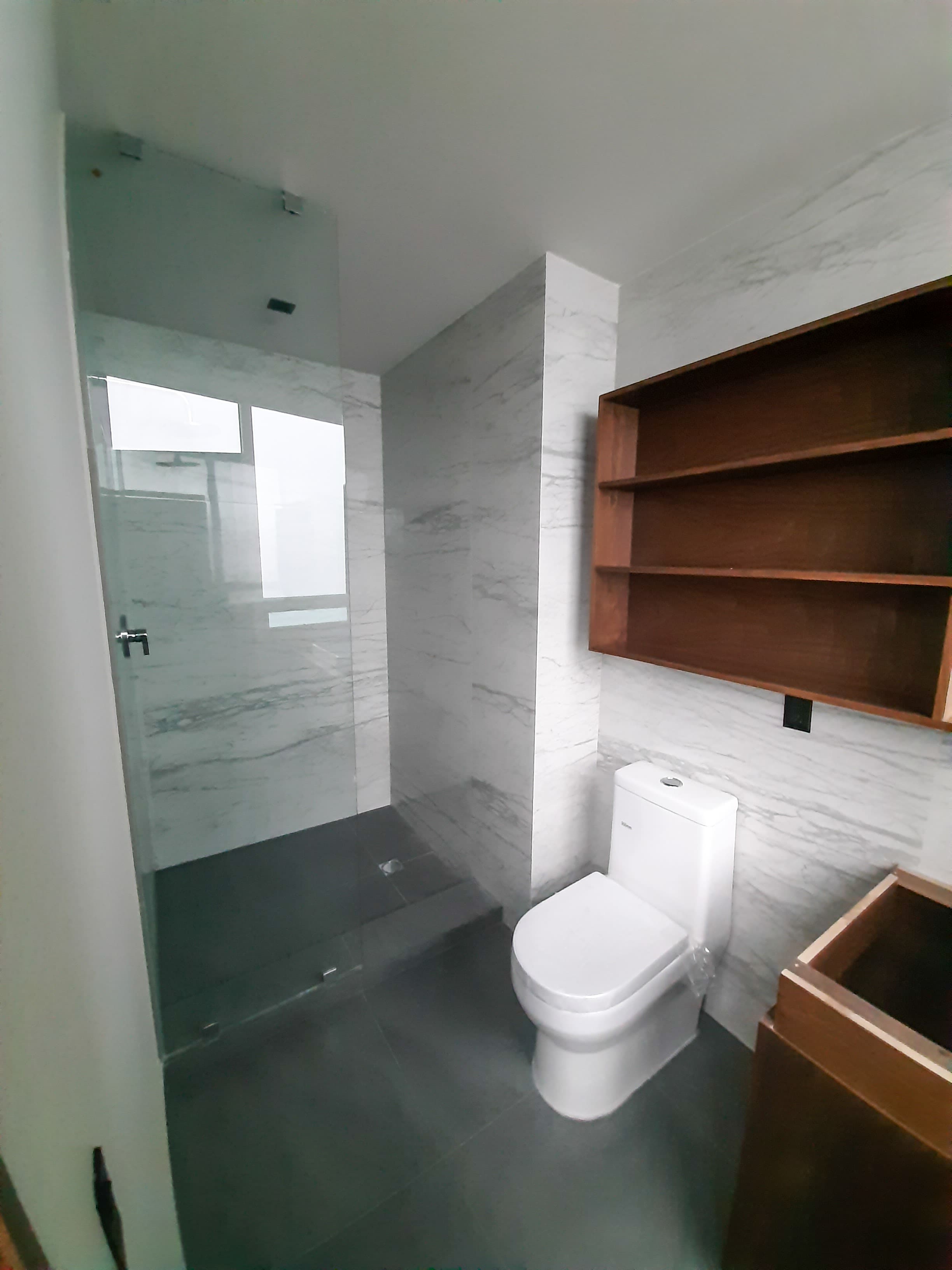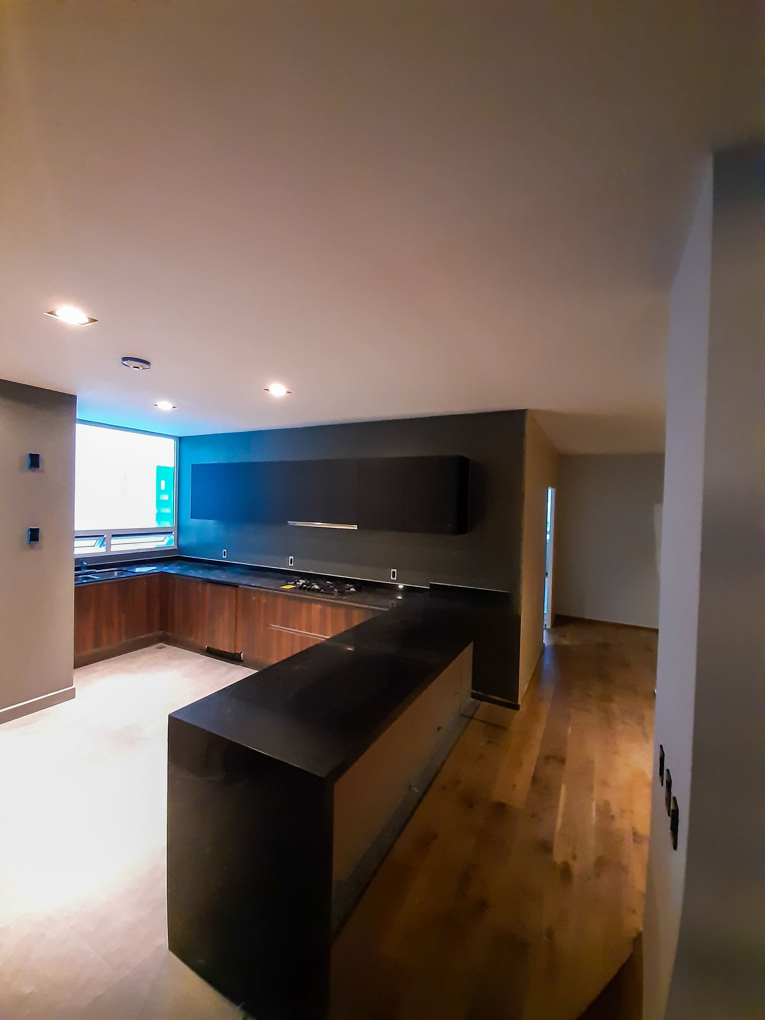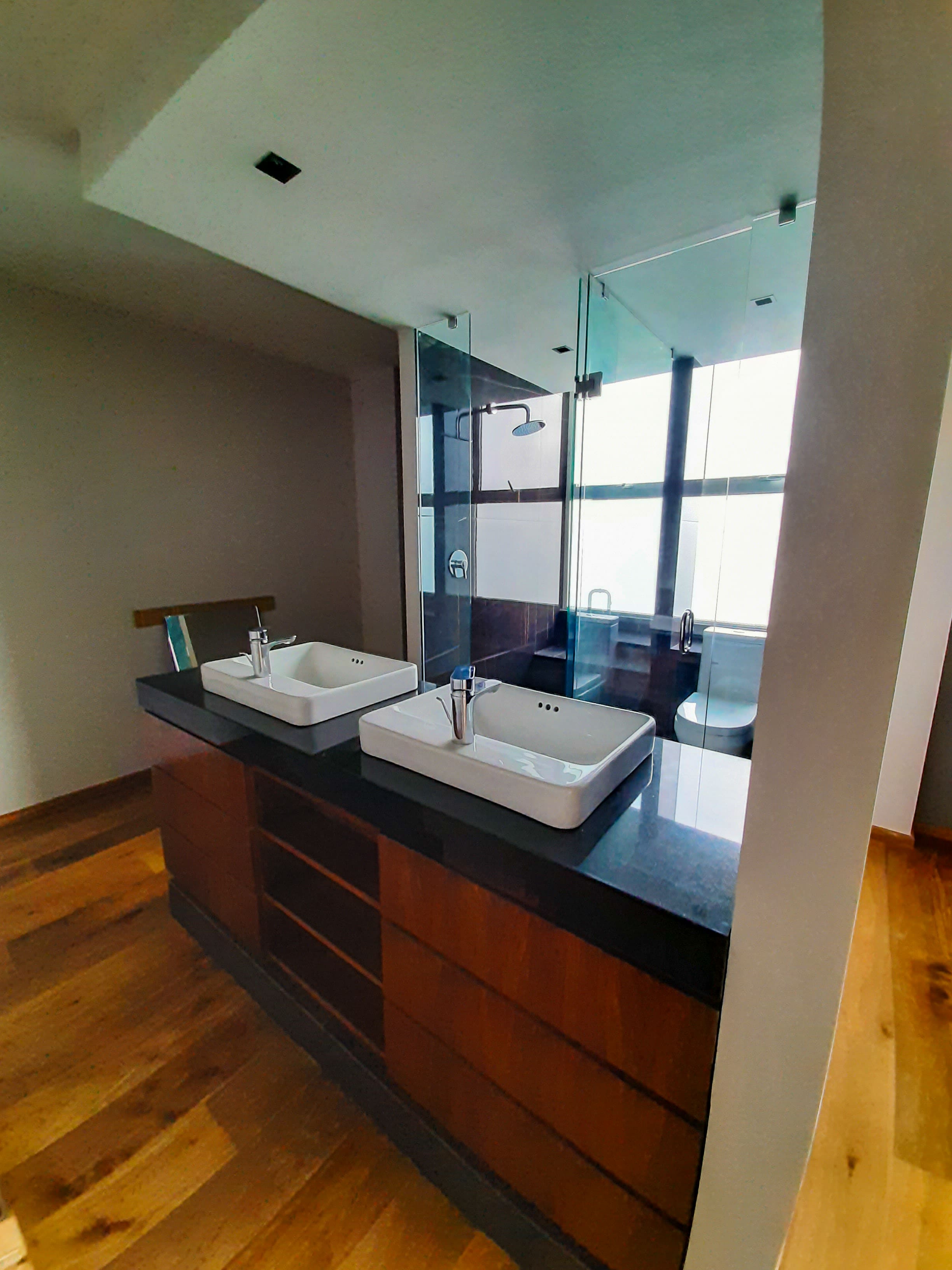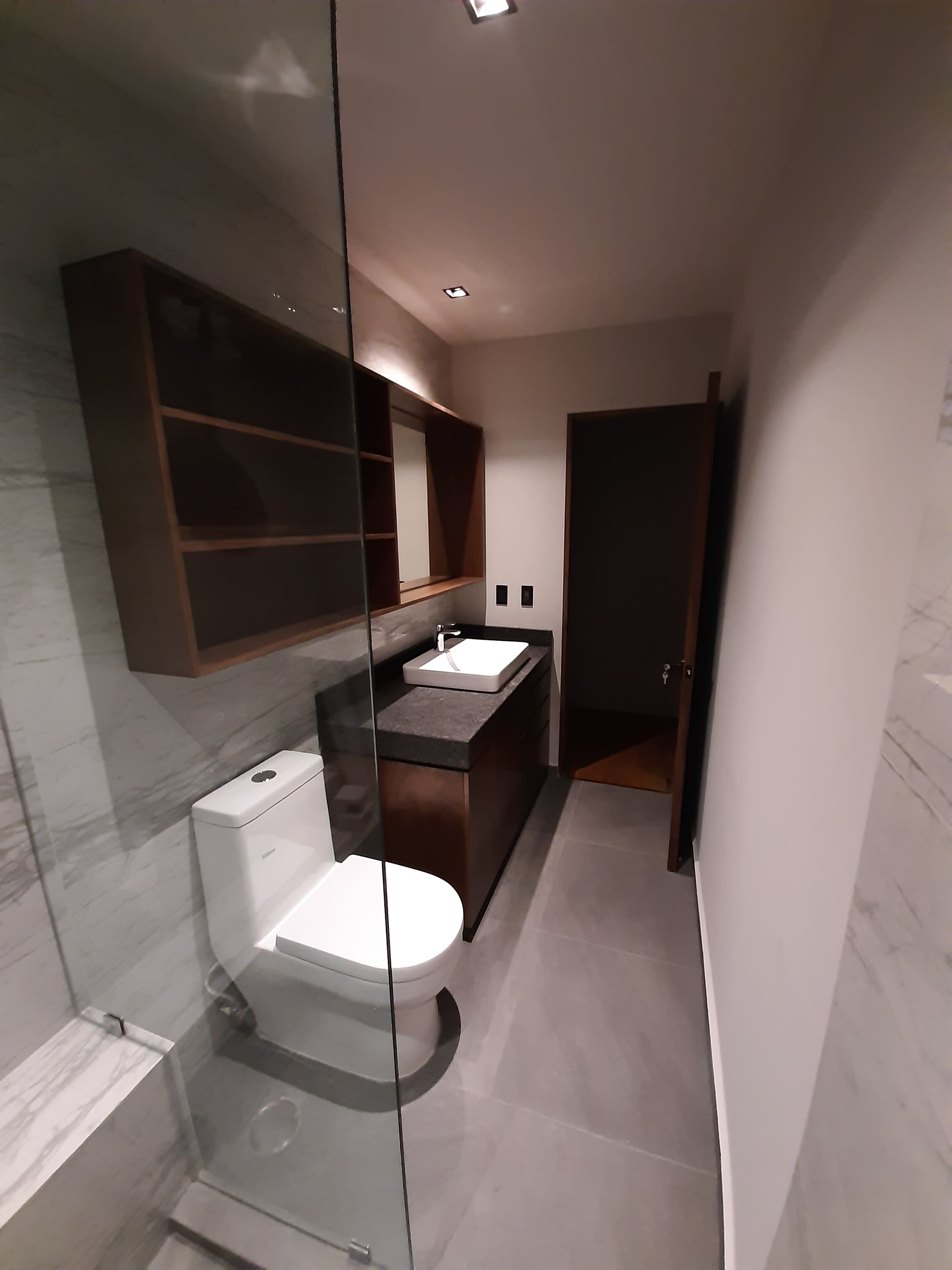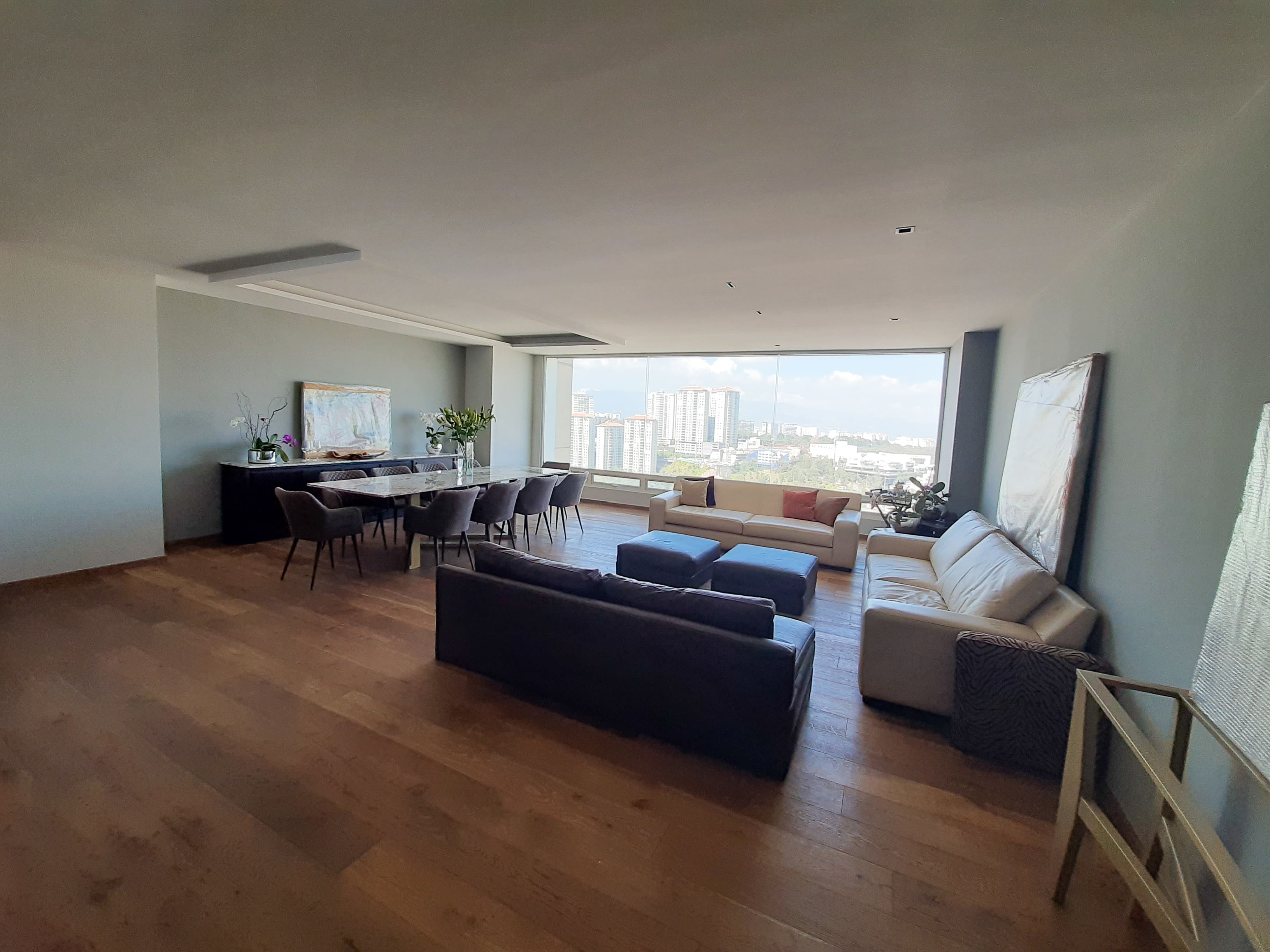La rehabilitación de este penthouse en Santa Fe, se completó en solo cuatro meses centrándose en renovar completamente los acabados y recubrimientos de cada espacio. estableciendo un estilo minimalista y contemporáneo, con el uso de materiales como madera y mármol para lograr un espacio elegante y moderno.